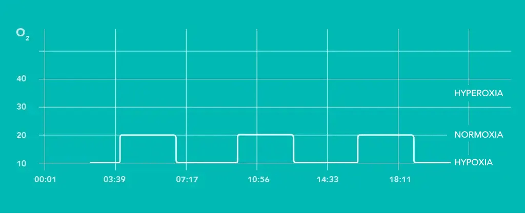 The advantage of hypoxia-hyperoxia training is that the initial oxygen saturation in the blood is restored relatively quickly. However, hyperoxia over several minutes can increase oxidative stress and can also be disadvantageous for certain groups of people with pre-existing conditions.